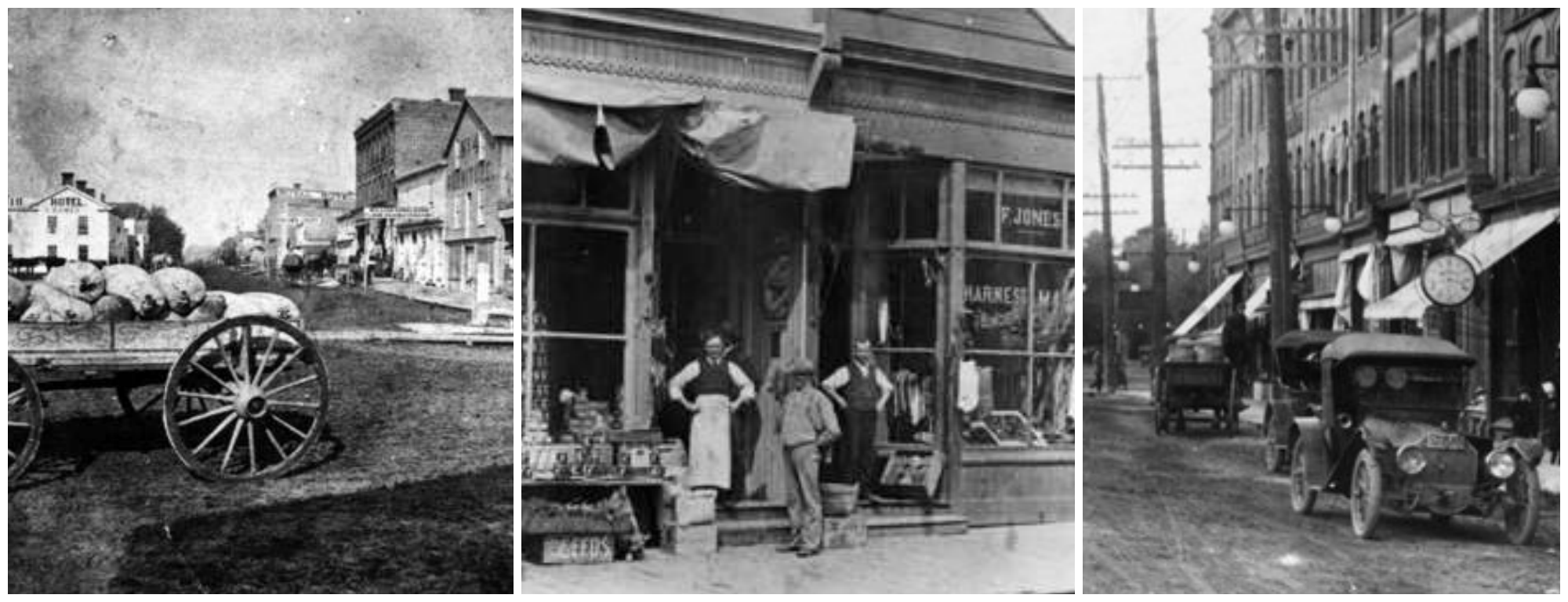 No two downtowns are completely alike, but more often than not, you will see a pharmacy, grocers, town hall, post office, library, salon, barber shop, diner, pub and a clothiers. If I were writing a historical piece, I would consider a dry goods store, feed store, livery, blacksmith, pharmacy, letter pick up and telegraph office. The shopkeepers and patrons can be secondary characters that act as conduits for gossip or catalysts for change that affect the protagonist. Friend of foe? Supporter or obstacle? How busy are the shops? Is the town thriving or dying or undergoing a metamorphosis? These photos, spanning the 1890’s to 1930’s, are courtesy of the Whitby Library Archival Collection.