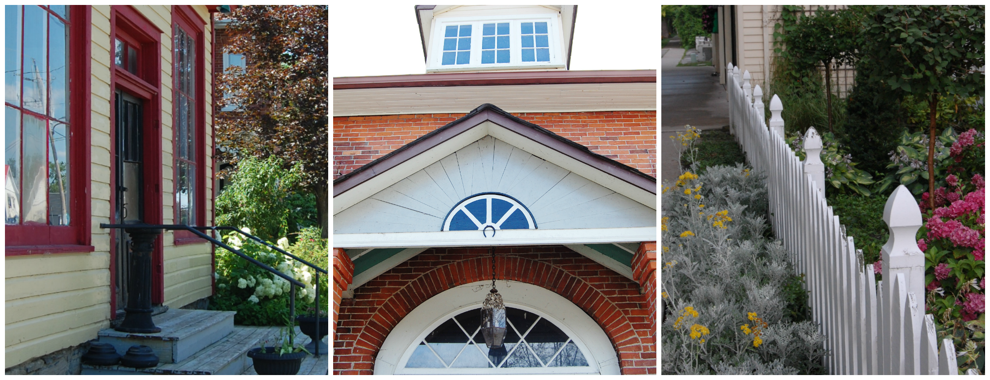The historical houses that often greet you upon entering a small town are like a welcoming committee. Some towns offer a grand gesture, with splendid homes perhaps with adjoining carriage houses, sweeping verandas flanked by hydrangeas and towering shade trees. These homes were typically built by community leaders; founding fathers, barristers, successful business people. Other towns offer a more modest but equally enchanting welcome with gothic farmhouses decked in gingerbread trim and an abundance of dogwood and tiger lilies. A huddle of cattle along a fence line may greet you just before the four corners of a quaint village centre. (Below: Hillary House in Aurora, Ontario)